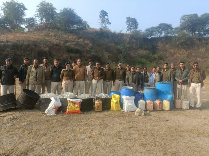 कार्रवाई के दौरान 210 लिटर हाथ भट्टी मदिरा एवं 1750 किलोग्राम महुआ लहान सैंपल लेकर मौके पर ही नष्ट किया गया। जप्त मदिरा, महुआ लहान एवं सामग्री का कुल बाजार मूल्य लगभग 2 लाख 17 हजार रुपए आंका गया है।