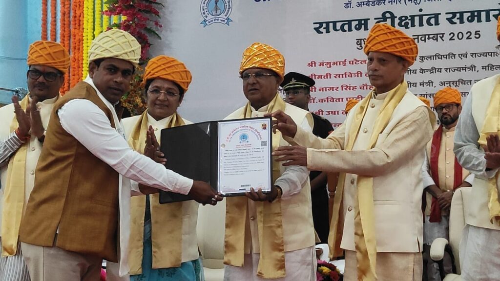 डॉ. बी.आर. अम्बेडकर सा.वि.वि. महू का 7वां दीक्षांत समारोह सम्पन्न, राज्यपाल ने 16 शोधार्थियों को प्रदान की पीएच.डी. उपाधि